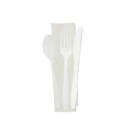 Victoria Bay 4PC Cutlery Kit PP White Medium Weight With Napkin,Fork,Knife,Teaspoon 500/Case