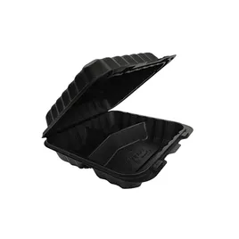 Victoria Bay Take-Out Container Hinged 9X9X3 IN 3 Compartment MFPP Black Square Freezer Safe Microwave Safe 150/Case