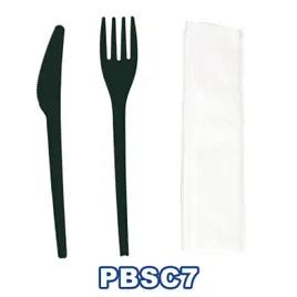 Victoria Bay 3PC Cutlery Kit Cornstarch Black With Napkin,Fork,Knife 50 Count/Pack 5 Packs/Case 250 Count/Case