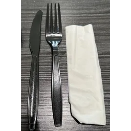 Victoria Bay 3PC Cutlery Kit PS Black Heavyweight With Napkin,Fork,Knife 250/Case