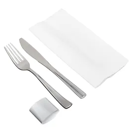 Victoria Bay 3PC Cutlery Kit PS Silver Heavy Pre-Rolled Banded With 15.5X16 Linen Feel Napkin,Fork,Knife 100/Case