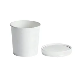Victoria Bay Soup Food Container Base & Lid Combo With Flat Lid 16 OZ Paperboard White Round Tall 250/Case