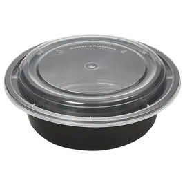 Victoria Bay Take-Out Container Base & Lid Combo 32 OZ PP Black Clear Round Shallow Microwave Safe 150/Case