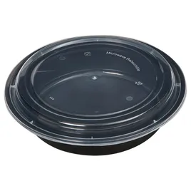 Victoria Bay Take-Out Container Base & Lid Combo 48 OZ PP Black Clear Round Shallow Microwave Safe 150/Case