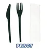 Victoria Bay 3PC Cutlery Kit Cornstarch Black With Napkin,Fork,Knife 50 Count/Pack 5 Packs/Case 250 Count/Case